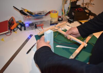- Por ultimo sujetamos los cables, el receptor y la batería, cada vez que se cargue, con cinta adhesiva.