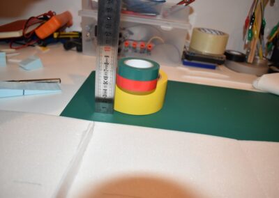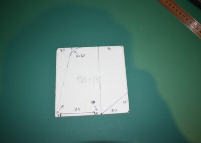 - Empezamos por hacer el fuselaje, para lo cual cortamos un rectángulo de poli estireno de 75 x 15 x 3 cm.
