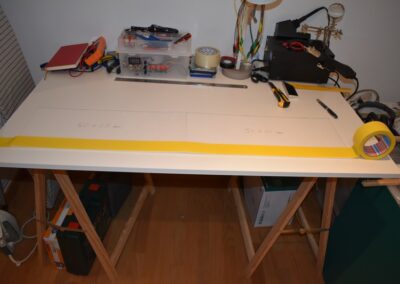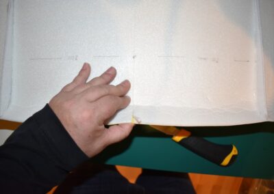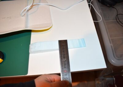 - En la parte inferior del ala marcamos donde vamos colocar las costillas, haremos desde el centro dos líneas paralelas hacia cada lado, la primera a 20 cm y la segunda a 40 cm.
