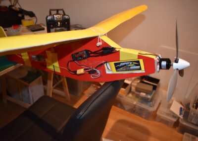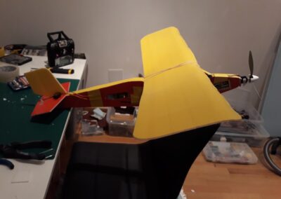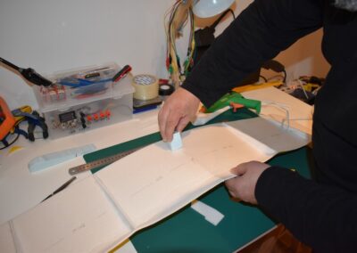 - Colocamos el ESC, sujetándolo con cinta adhesiva en el fuselaje, en la parte inferior del ala.