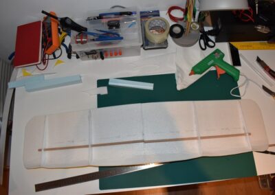 - 1 planchas de Poli estireno o material similar 25×13 cm y 4 mm espesor para el estabilizador horizontal.