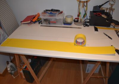 - Ahora toca revestir el fuselaje y los estabilizadores con cinta o laminas adhesivas del color deseado.