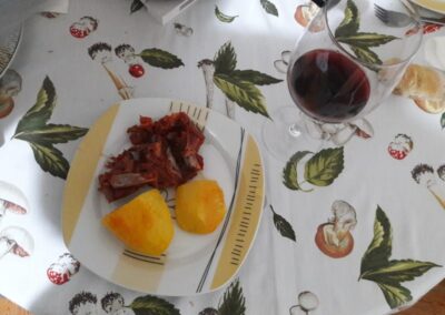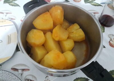 - Cuando estén las patatas cocidas las retiramos de la pota junto a las Androias, les echamos un chorro de aceite de Oliva y a comer.
