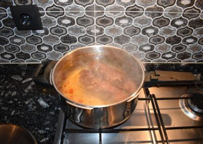 - Se ponen las dos Androllas a cocer en abundante agua y unas hojas de laurel, más o menos, en 2 horas estarán cocidas.