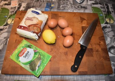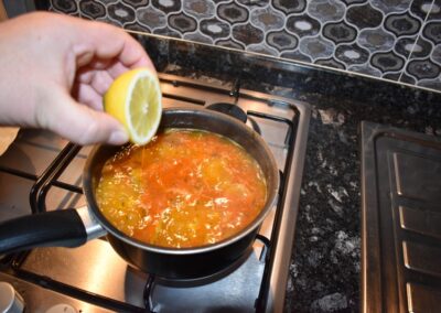 - Exprimimos medio limón, poniendo la mano debajo para evitar que caigan las pepitas al Cazo.