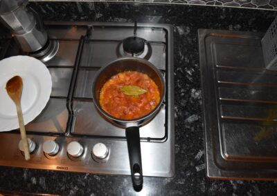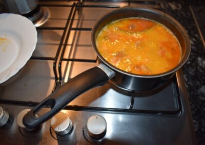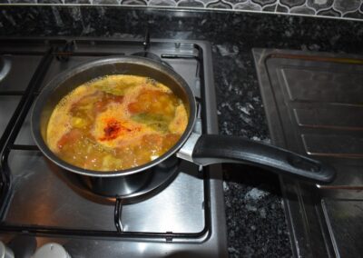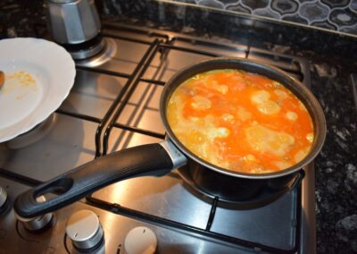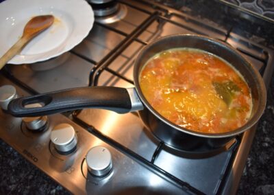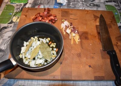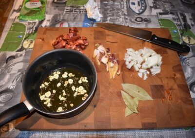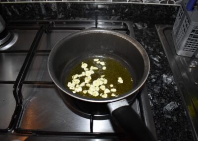 - Ponemos el cazo al fuego y doramos los Ajos.