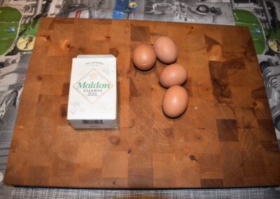 - Echamos una Pizca de Sal en Escamas a las yemas de cada Huevo.