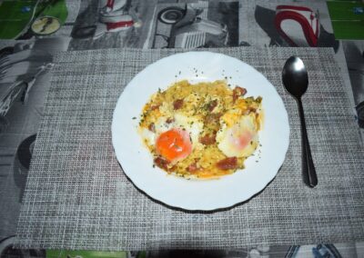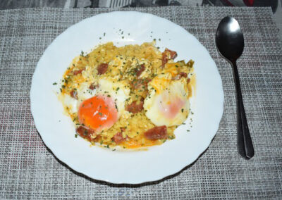 - Ahora es cuando cascamos los huevos sobre la superficie de nuestro Arroz.