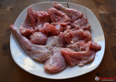 - Sazonamos el conejo con sal y pimienta negra al gusto, al menos una hora antes de cocinar, para que coja bien el sabor.