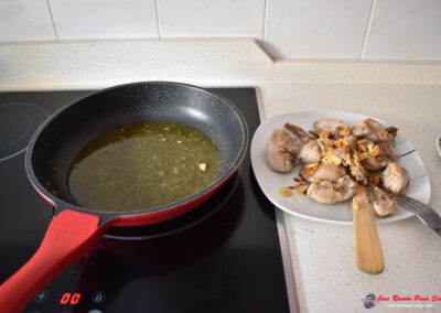 - Incorporamos de nuevo el conejo y los ajos a la sartén.