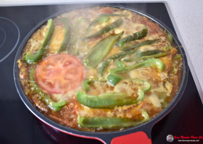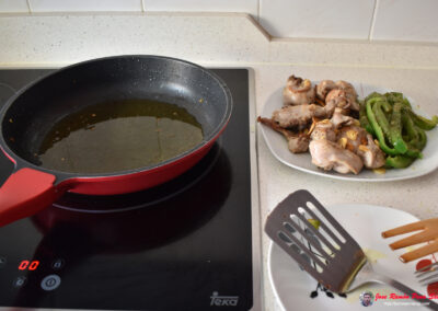 - Una vez fritos los pimientos, los sacamos de la sartén y los reservamos también.