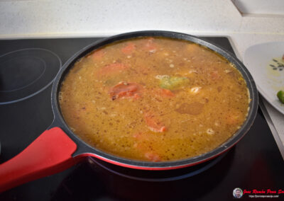Aquí el protagonista es el conejo, tierno y sabroso, acompañado por un sofrito casero con ajo, cebolla, pimiento y tomate que huele a gloria desde que empieza a chisporrotear en la sartén. Le añadimos arroz, un toque de azafrán, laurel, y para rematar, unos huevos cocidos que le dan un punto buenísimo.