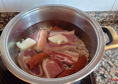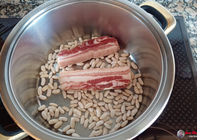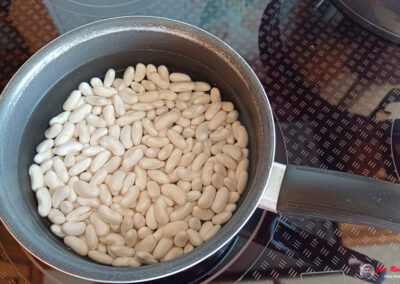 - Para comenzar, echamos las habas rehidratadas en la olla.