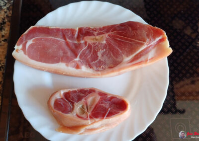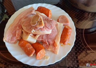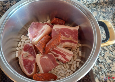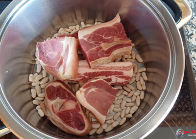 - Una vez cocida la carne, lo sabremos pinchándola con un tenedor; si está blanda es que está en su punto. La retiramos de la olla, dejando únicamente en ella el caldo, el unto y las habas.