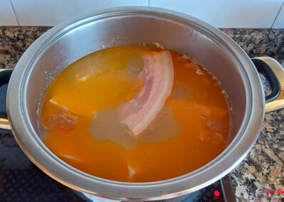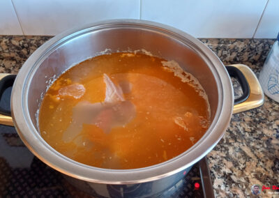 - Comprobamos el punto de sal del caldo y añadimos más si es necesario.