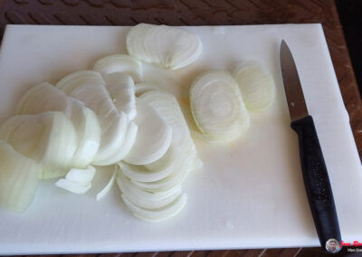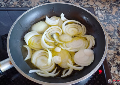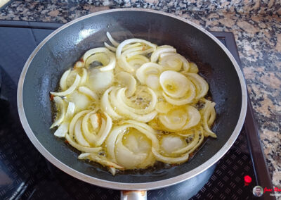 - Dejamos que se fría la cebolla hasta que las puntas empiecen a adquirir un tono tostado.