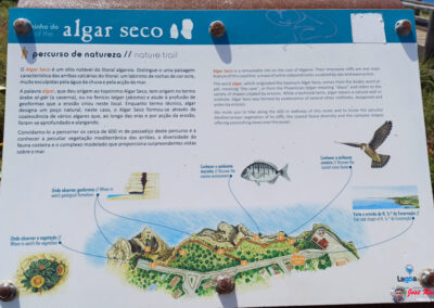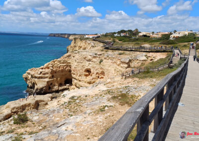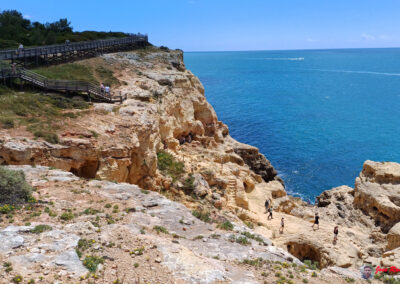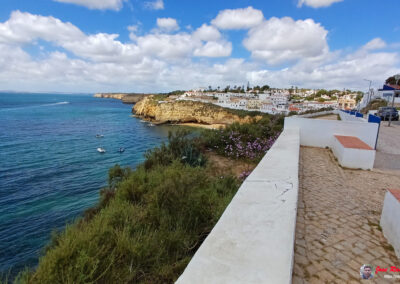 A solo un corto paseo desde el centro de Carvoeiro, encontrarás Algar Seco, un impresionante conjunto de formaciones rocosas y cuevas. El mirador ofrece vistas espectaculares del Atlántico, y los más aventureros pueden explorar las cuevas y piscinas naturales formadas por la erosión del mar. Es un lugar ideal para tomar fotografías y disfrutar de la belleza natural de la región.