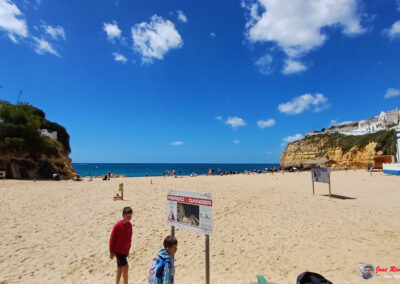 Considerada una de las playas más hermosas del mundo, Praia da Marinha está a solo unos 15 kilómetros al este de Carvoeiro. Esta playa es famosa por sus aguas turquesas, acantilados espectaculares y formaciones rocosas únicas. Es un lugar ideal para hacer snorkel y descubrir la vida marina en sus aguas cristalinas. El acceso a la playa incluye un descenso por escaleras, lo que añade un toque de aventura a tu visita.