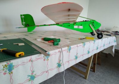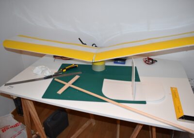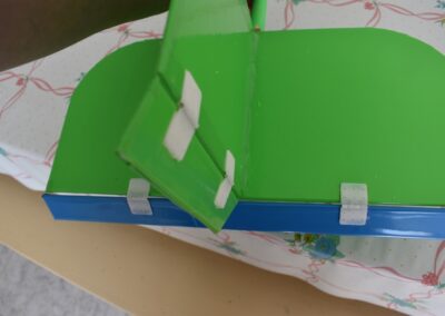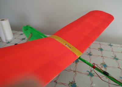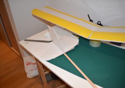 18. Ahora toca revestir los estabilizadores con cinta o laminas adhesivas del color deseado. Pintamos el fuselaje y el ala, si lo deseamos.