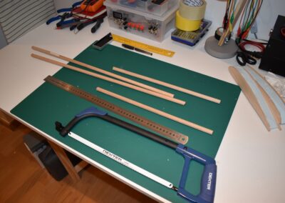 • 2 listones redondos o cuadrados de Madera para reforzar las alas y hacer el tren de aterrizaje.