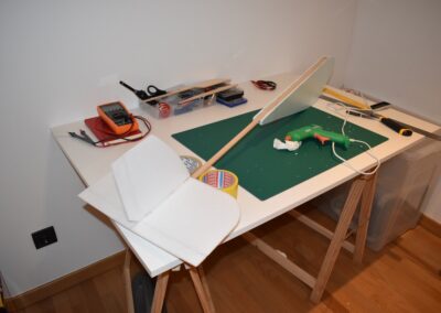 9. Por último, sujetamos los cables, el receptor y la batería, cada vez que se cargue, con cinta adhesiva.