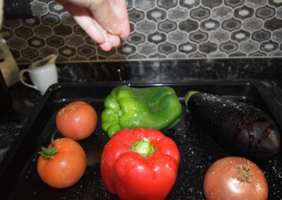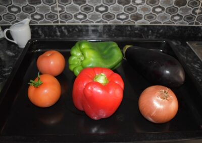 - Ponemos las verduras, enteras y limpias, sobre una bandeja de horno.