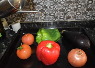 - Les echamos un chorro de aceite de Oliva Virgen, por encima, el cual se mezclará con los jugos que suelten.