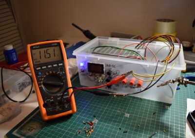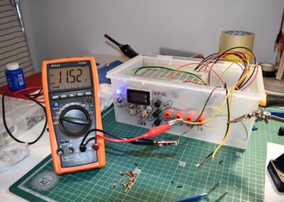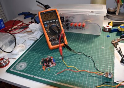 - Cuando tengamos la fuente de alimentación terminada haremos una última comprobación. En mi caso, primero la comprobé con el multímetro y luego la comprobé con la pantalla digital que tengo instalada en la fuente, como se aprecia en las fotografías. Además, le conecté el arco de corte de porexpan, del cual, en el blog, tengo un artículo de cómo lo fabriqué y probé a regularle tanto la tensión como la intensidad. El resultado es que funciona perfectamente.