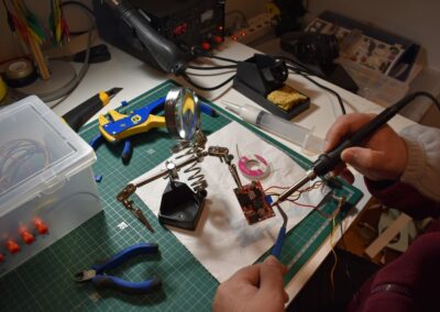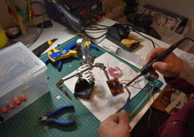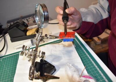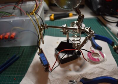 - Cogemos 3 cables, pelamos las puntas y les ponemos estaño.