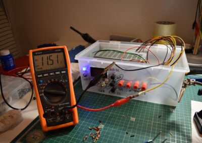 - Una vez comprobado el circuito, y que funciona como queremos, lo acoplamos a la fuente de alimentación, asegurándonos que, si tenemos alguna conexión sin aislar no haga contacto con otra.