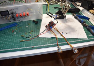 - Una vez comprobados los potenciómetros soldamos el otro extremo de los cables, de cada uno, a los pines donde venían conectados los dos potenciómetros que hemos extraído.
