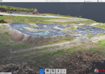 6.       El siguiente paso sería buscar y marcar en la nube de puntos los puntos de control establecidos previamente con métodos topográficos, GPS o estación, para georreferenciar con exactitud la nube de puntos. En mi caso, me salto este paso porque no cuento con puntos de control en el campo, aunque podría obtenerlos de Google Earth sin ningún problema, mejorando así un poco la posición del conjunto. De todas formas, os detallo los pasos a seguir: