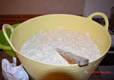 - Mezclamos los 15 litros de agua con los 3 kg de harina.