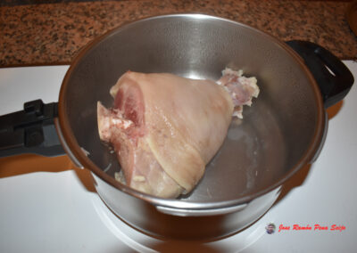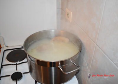 - Añadimos Sal, a gusto del consumidor y teniendo en cuenta que al día siguiente se añadirá el caldo de cocción de la Carne, que puede que ya este salada.