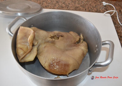 - 3 litros de Caldo de Cocción de Carne de Cerdo,( curada y desalada).