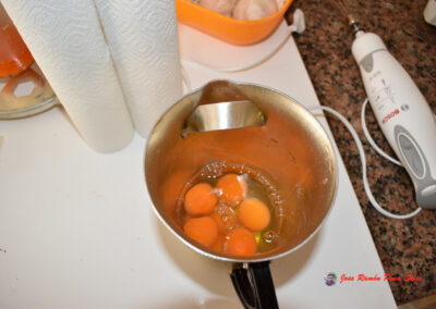 - Añadimos a la mezcla, del día anterior, los 8 huevos batidos.