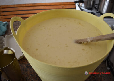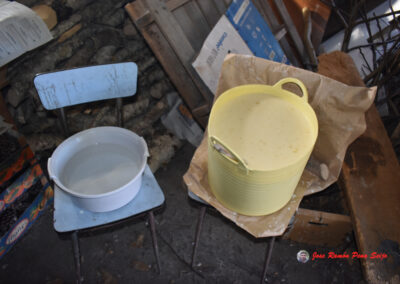 - Cojo el líquido con un cazo y lo echo en la parte superior de la piedra, también lo hecho a media altura, con ello la mayoría de la piedra queda cubierta con la mezcla.