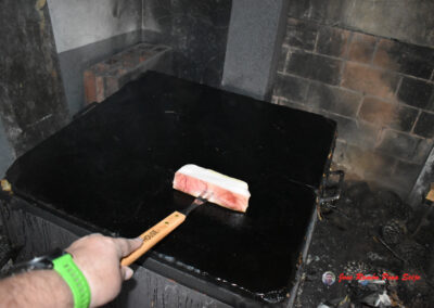 - Engraso toda la superficie de la piedra, pasando el tocino ibérico por toda ella.