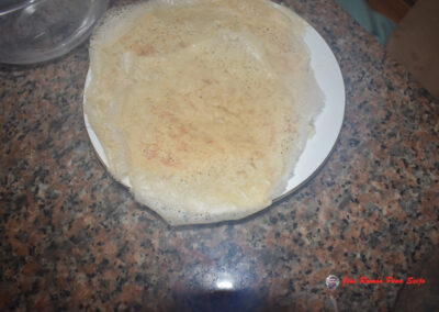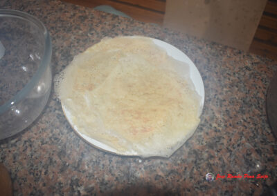 Los Freixos o Filloas se pueden preparar en Sartén o en la piedra, en este caso, yo los hago en una piedra cuadrada, de 62 cm de lado y con una pequeña inclinación, de modo que al verter el líquido en la parte superior, de la piedra, se extienda con ayuda de la gravedad. En cada tanda saco cuatro Freixos.