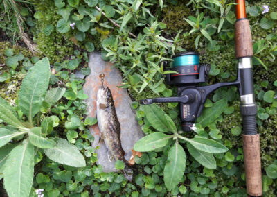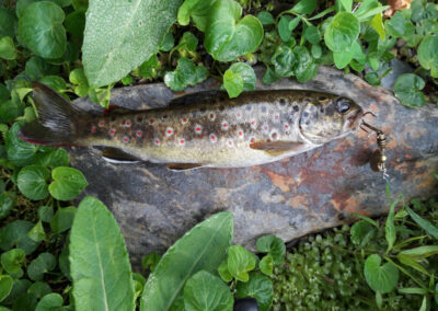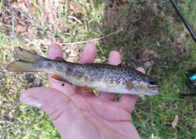 En el tiempo que estuve pescando me han estado entrando truchas continuamente a la cucharilla, de todas ellas he logrado coger 10 truchas que más o menos estarían entre 10 y 22 cm.