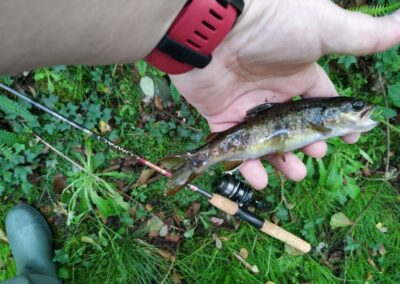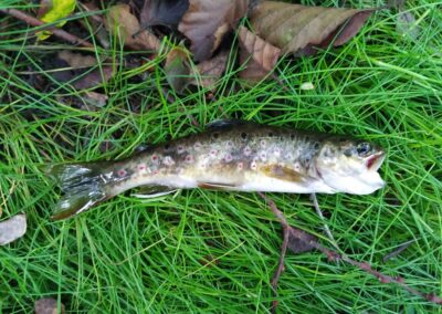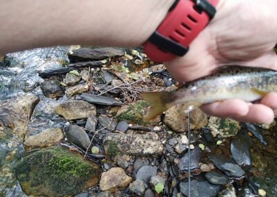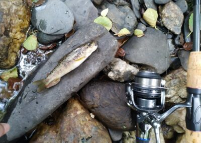 En la 1 hora y media que estuve pescando me han estado entrando truchas continuamente a la cucharilla, de todas ellas he logrado coger 6 truchas que más o menos estarían entre 7 y 21 cm.