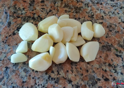 - Añade los dientes de ajo cortados en trozos pequeños.