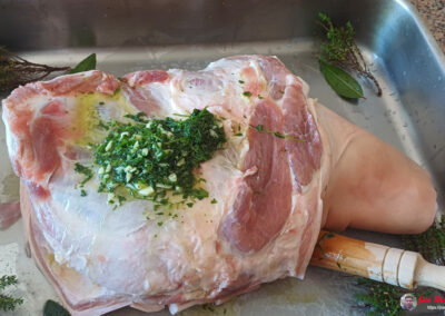 - Da la vuelta al lacón y vierte el resto del adobo sobre la otra cara, extendiéndolo igualmente.