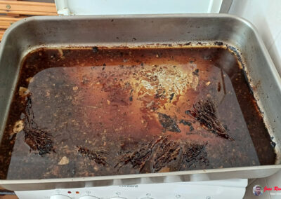 - Raspa el fondo de la bandeja para recoger cualquier resto pegado y agrégalo también a la olla.