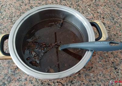 - Añade agua (la cantidad depende de cuánta salsa quieras preparar) y otro vaso de vino.