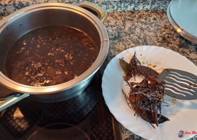 - Finalmente, apaga el fuego y sirve la salsa junto al lacón.