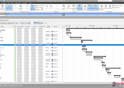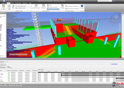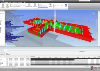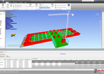Gestión de cronogramas: Vico Office facilita la creación y gestión de cronogramas, permitiendo planificar el proyecto en función de la secuencia de construcción y la disponibilidad de recursos, así como realizar simulaciones para visualizar el avance.