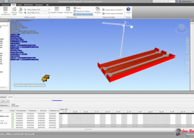 Posteriormente, se importa un archivo de programación, ya sea desde Microsoft Project o ingresando las tareas manualmente, lo que yo he hecho, y se vinculan las tareas del cronograma con los elementos del modelo. Esto permite visualizar la construcción del proyecto a lo largo del tiempo. Además, se configura la simulación de la planificación, se añaden animaciones para tareas específicas, como el movimiento de maquinaria, y se ajustan aspectos visuales para mejorar la comprensión del proceso.