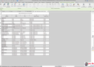 - Generación de Tablas de Planificación en Revit: Revit permite crear tablas de planificación para extraer mediciones de elementos como muros, materiales, carpinterías, y más. Estas tablas facilitan la obtención de información que luego puede transferirse a programas de mediciones, como Arquímedes.