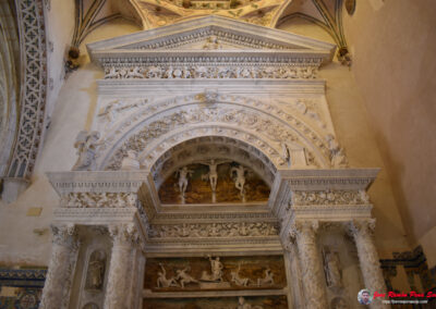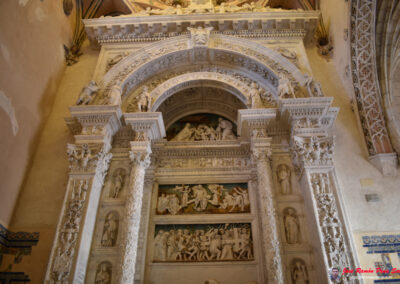 El monasterio conserva su arquitectura gótica y mudéjar en sus claustros y capillas. El claustro principal, rodeado de arcos ojivales, es un lugar de serenidad que invita a la contemplación. Entre las capillas destaca la Capilla de Santa Ana, que guarda un altar de cerámica y elementos decorativos que reflejan la maestría de los cartujos.